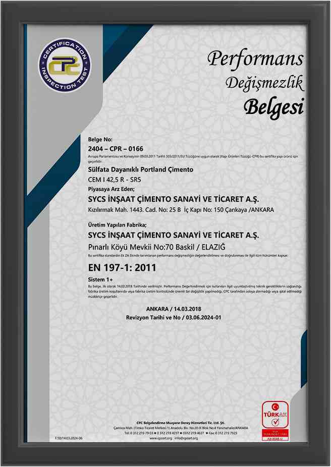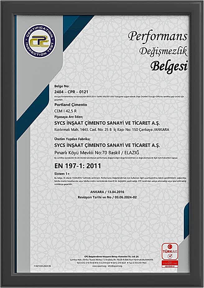 CEM I 42,5 R PD TR Belgesi