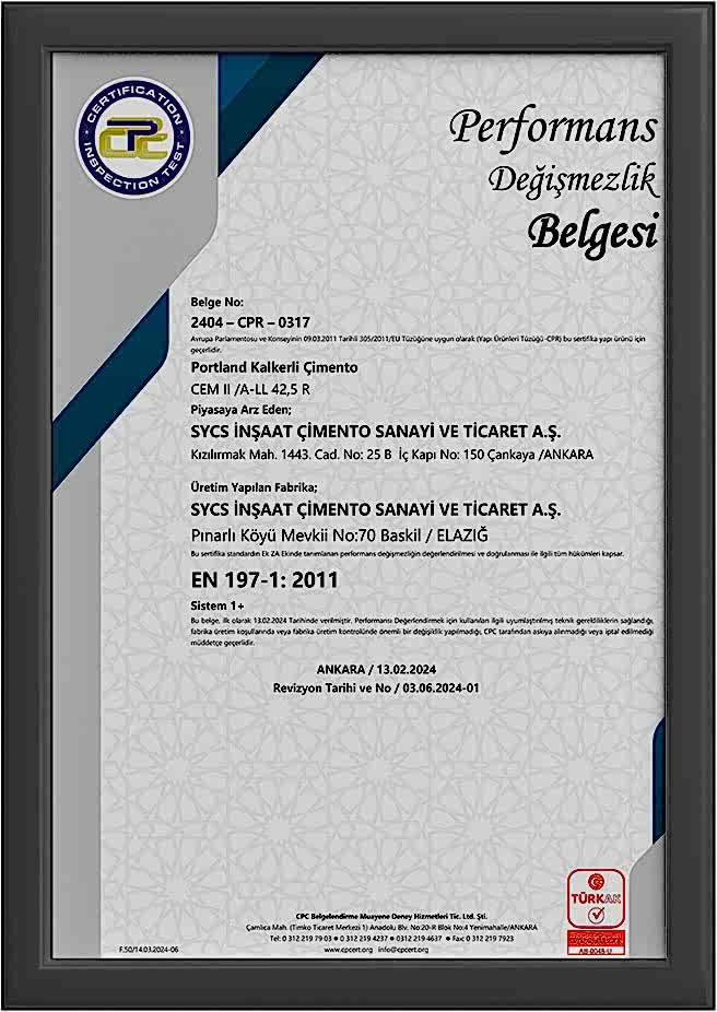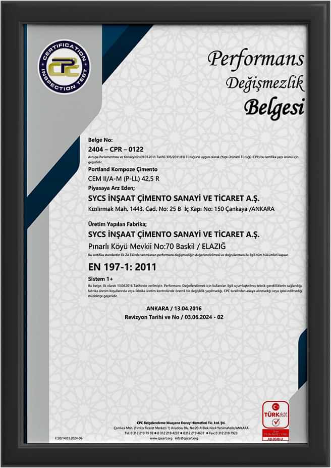CEM II A-LL 42,5R PD TR Belgesi