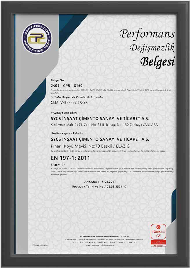 CEM IV B(P) 32,5 R-SR PD TR Belgesi