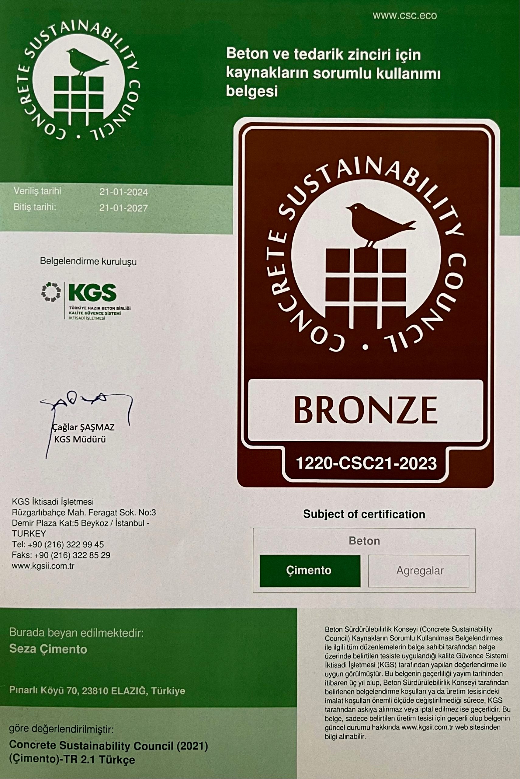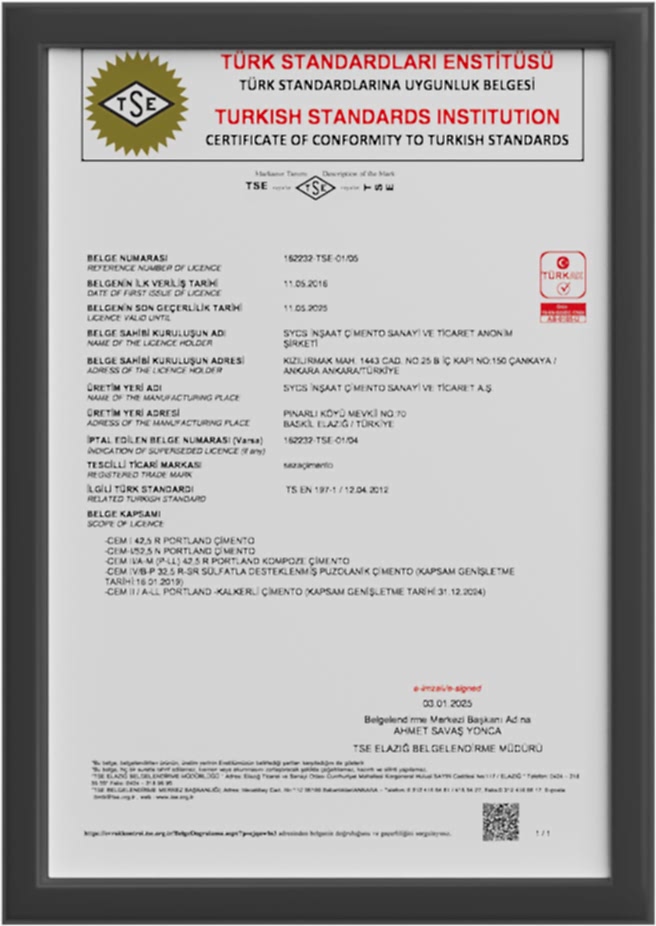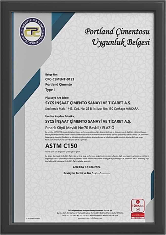 Portland Çimentosu Uygunluk Belgesi